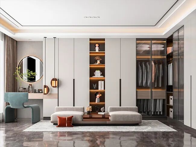 一个优秀的衣帽间不仅要审美达标,方便收纳的同时,一定要环保,想要更好的环保效果,全铝衣柜是个不错的选择,和记娱乐官网全铝家居推出的派克板,通过国家检测机构认证,健康环保没有异味,能做到即装即住,更让人安心。